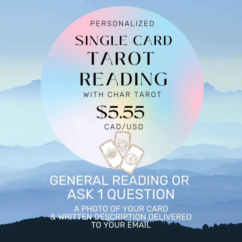 A single tarot card reading with a photo of your card(s) & message delivered to your email.